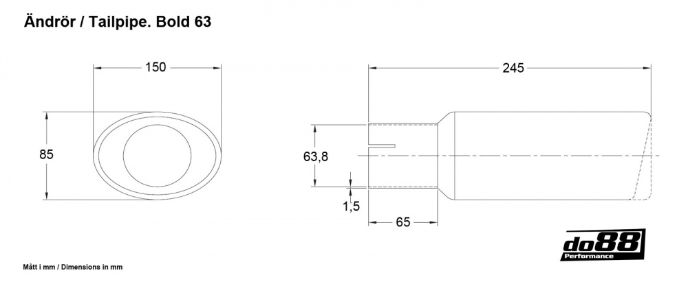 Ändrör i högglanspolerat rostfritt stål. Försett med muff och monteras enkelt på ett 2,5'' (63mm) rör med hjälp av en rörklämma.
