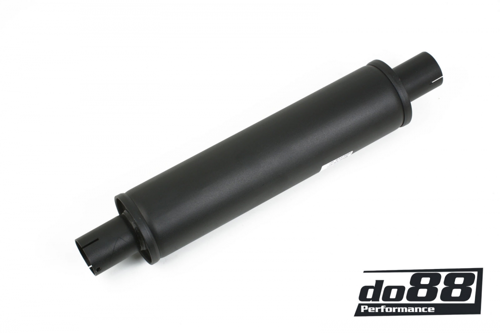 Universalljuddämpare som kan användas för att bygga avgassystem till de flesta fordon. Tillverkat av svartlackerat aluminiserat stål. Ljuddämparen har muff i båda ändarna för att kunna monteras mellan två rör med hjälp av rörklämmor. Angiven diameter avser innerdiameter i muffen.