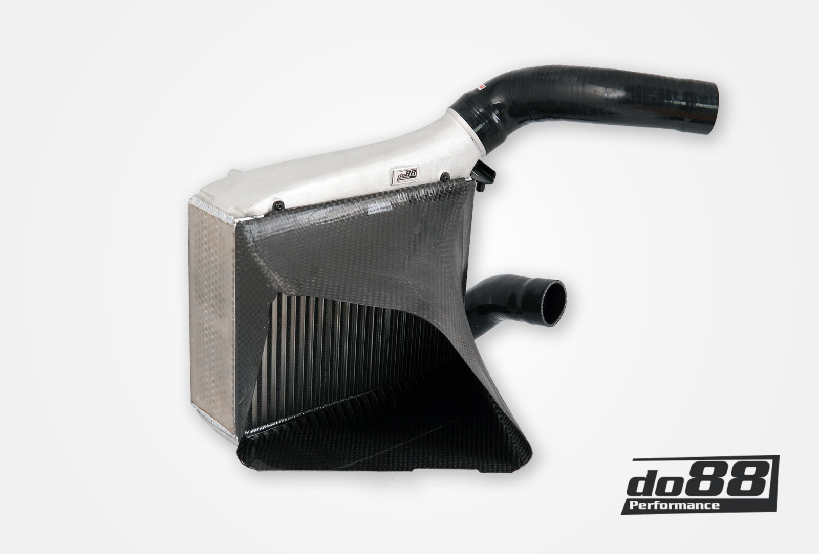 Silikonslangar som matchar de större anslutningarna ingår och passar mot originaltryckrören. Intercoolerkiten svetsas in-house i do88:s egna anläggning i Sverige – för att garantera högsta kvalitet.