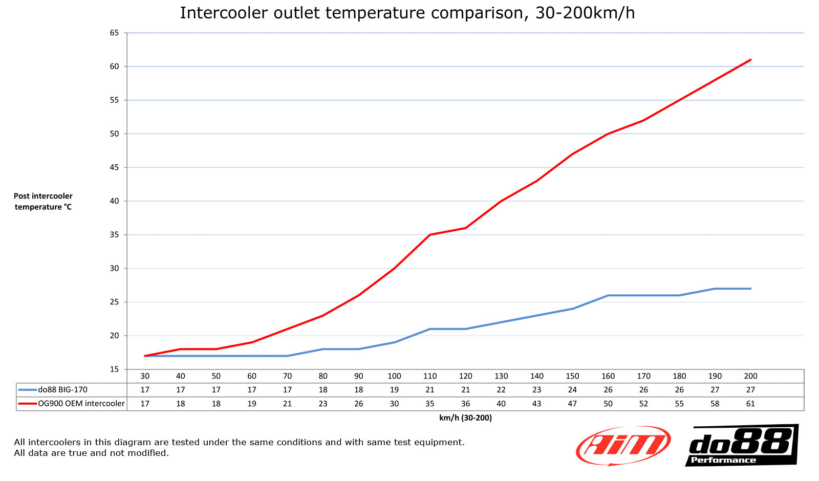 Tänkvärt är att originalintercoolern med tillhörande tryckrör designades för den effekt bilen hade original. Vid höjning av effekten eller vid mycket hårt användade av bilen, även i originalutförande, räcker inte längre dess prestanda till. Så redan vid höjt laddtryck / mjukvaruuppgradering / chippning kommer vårt intercoolerpaket att ge förbättrad prestanda!