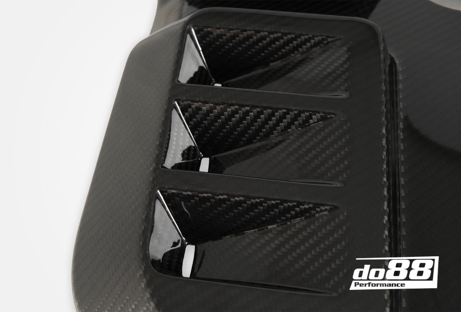 Tillverkad av 2x2 vävd prepreg-kolfiber och ytbehandlad med värmebeständig glansig klarlack, vilket garanterar överlägsen värmebeständighet och hållbarhet. UV-skydd har lagts till för att förhindra gulning över tid.