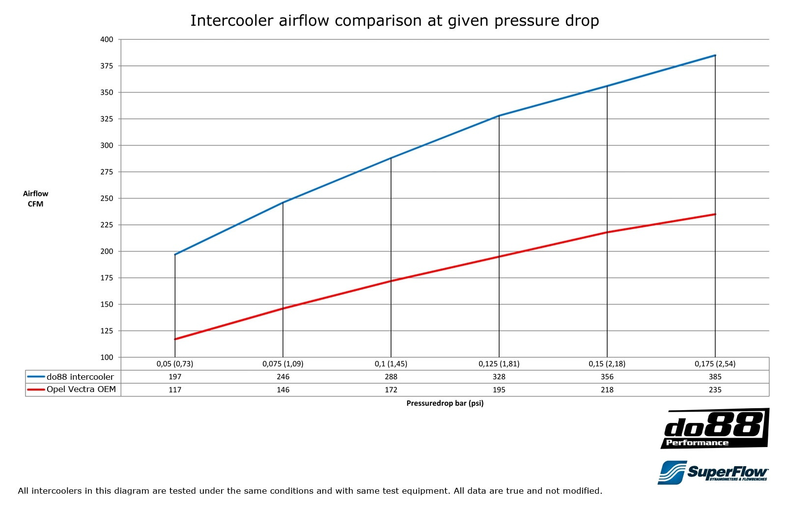 - Temperatur efter intercooler vid samma testförhållanden: 27°C (45°C), do88 18°C lägre