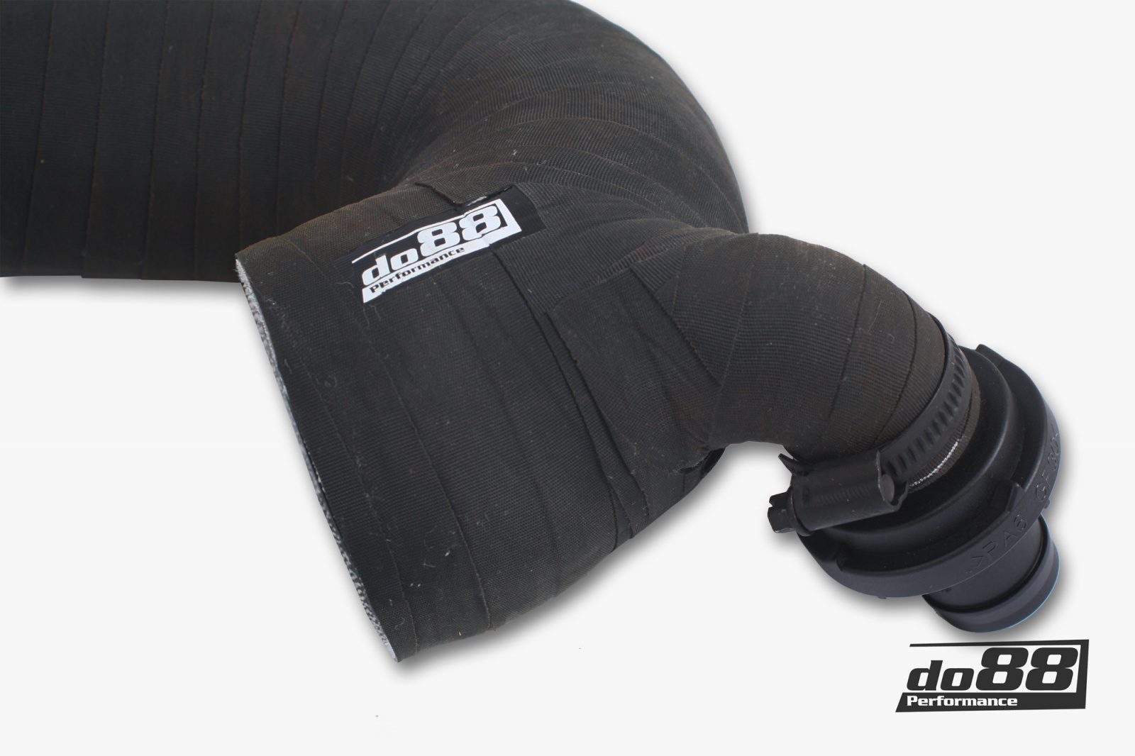 Slangarna kommer i en mattsvart, texturerad finish och levereras med CNC-bearbetade adaptrar som ansluter på turbons inlopp, på vilka slangarna sedan fästs. Slangarna är anpassade för att anslutas mot original luftburk eller do88 luftfiltersystem med 66 mm anslutning. Vi inkluderar svarta slangklämmor av bästa kvalitet!