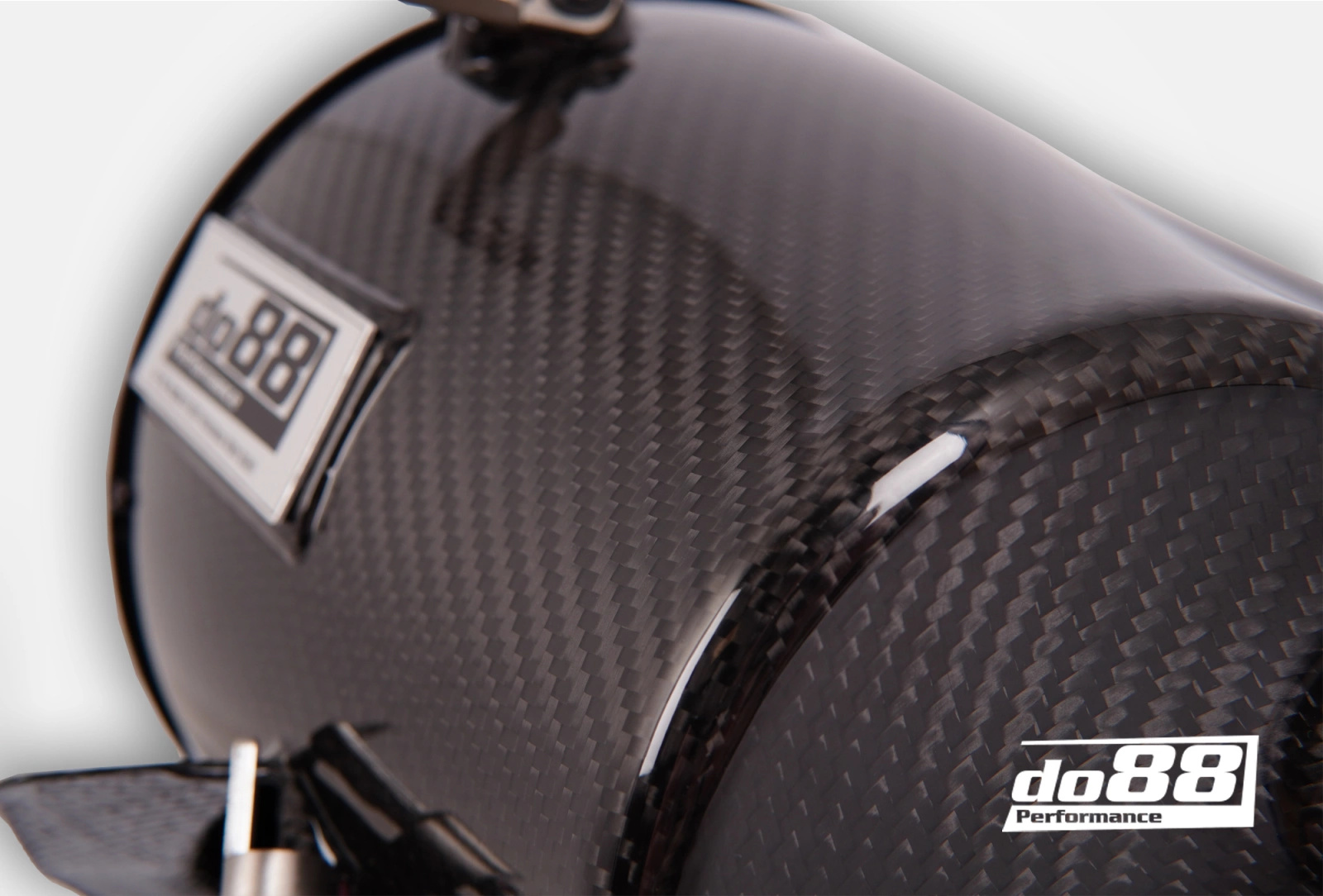 do88 luftfilterburk är tillverkad av vakuumformad, prepreg-kolfibermatta av finaste kvalitet. För att uppnå ett betydligt bättre luftflöde än original är systemet utrymmesoptimerat så långt det bara är möjligt för att kunna inhysa ett stort koniskt filter med bästa bomullsfiltermedia från erkända BMC! Vårt system ersätter hela bilens originalluftburk och ger en sann prestandaökning. Till detta medföljer silikonslangar i en diskret, matt finish.