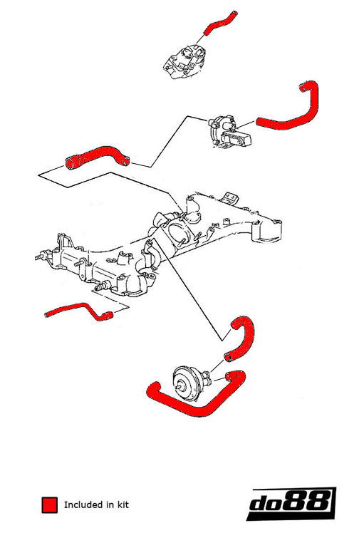 Ett egenutvecklat slangkit från do88 som ersätter originalslangar till tillsatsluftsliden och vakuumklockan under insuget!