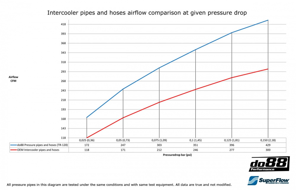 Detta paket är för dig som har höga effektmål och vill uppgradera till det absolut bästa! Vårt tryckrör har avsevärt bättre flöde än original, som vi har verifierat både i bil samt i vår egen SuperFlow SF-1020-flödesbänk.