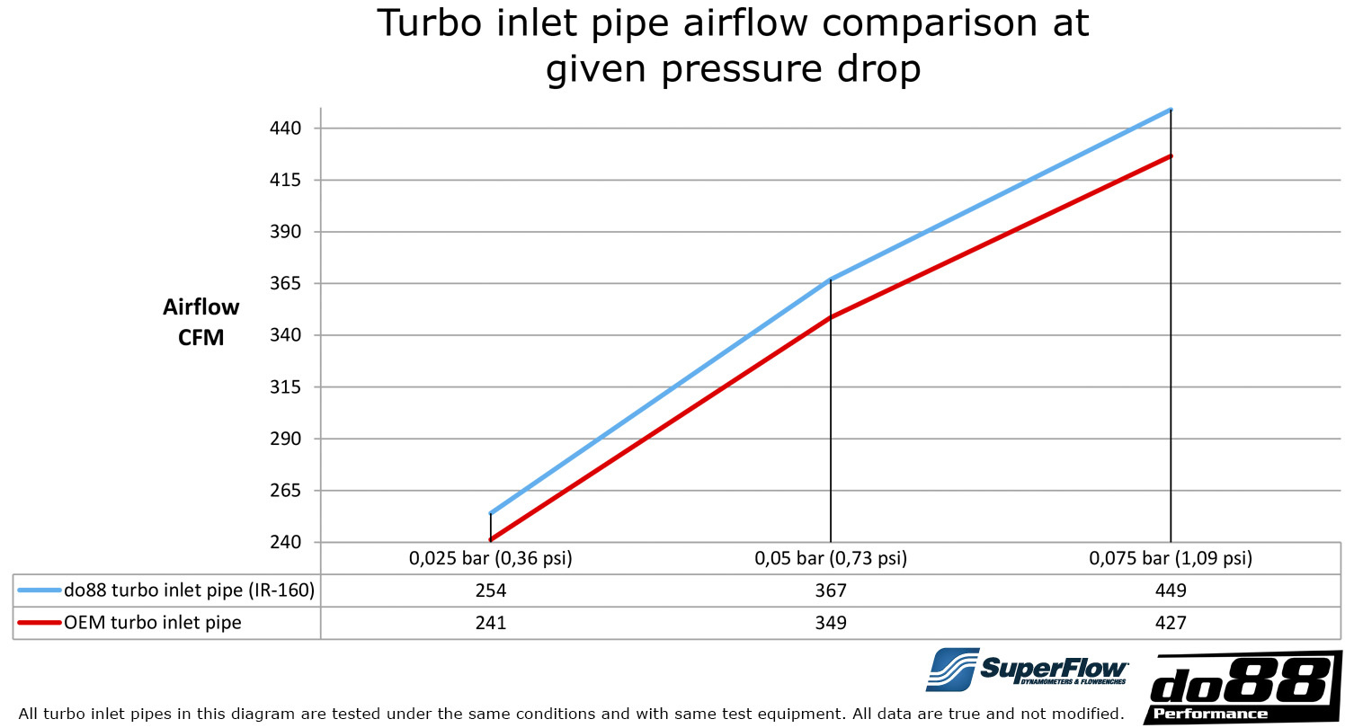 do88 inloppsrör har vid 0,075bars tryckfall ett luftflöde på 449CFM, att jämföras med originalröret som har 427CFM.