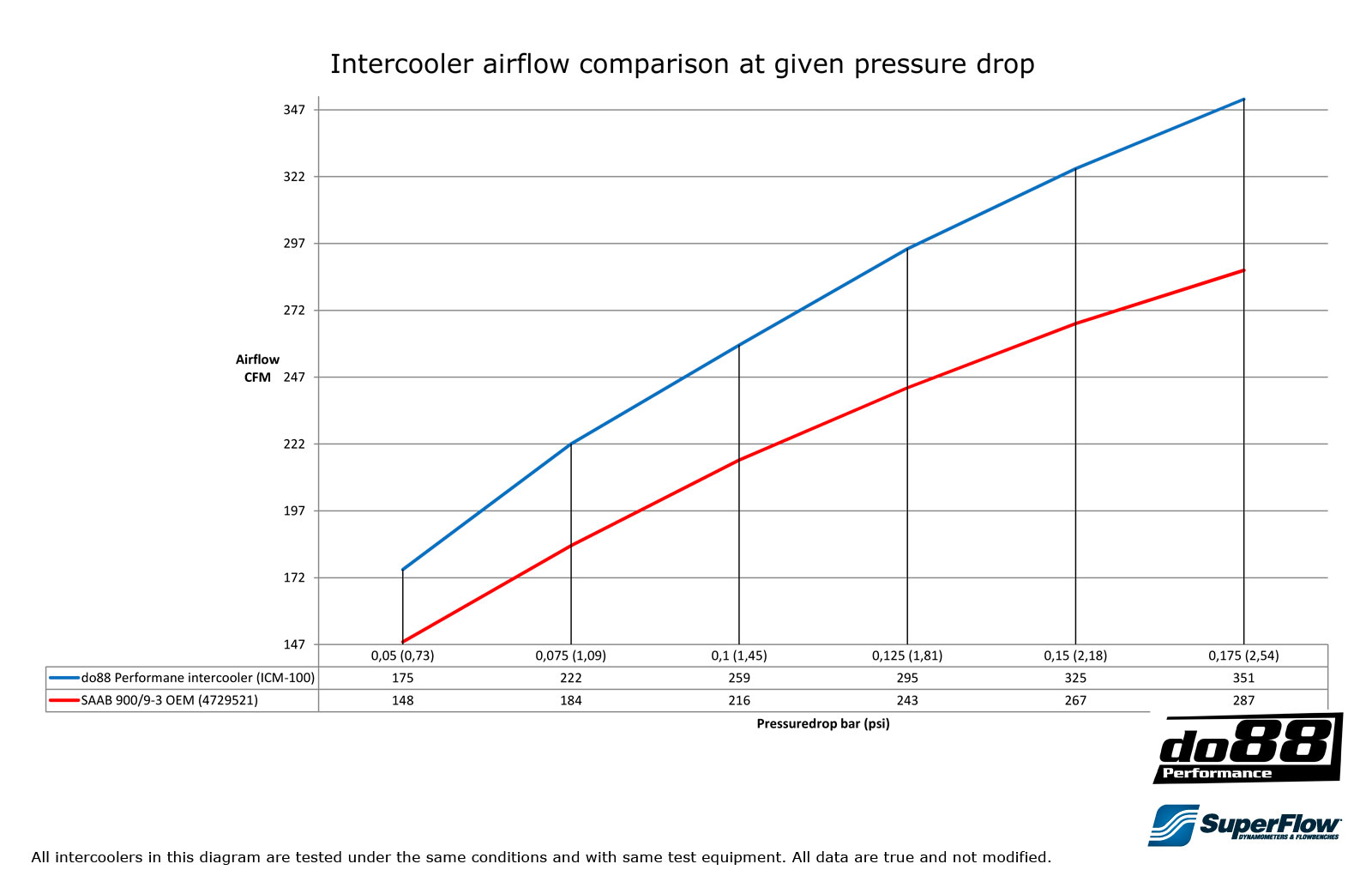- Temperatur efter intercooler vid samma testförhållanden: 33°C (73°C), do88 40°C lägre!