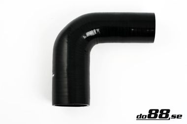 Svart 90 graders böjd reducerande silikonslang. Denna slang har olika innerdiameter i de båda ändarna. Slangen kan används till tryckapplikationer såsom turbo till intercooler samt sugapplikationer som luftfilter till insug mm. Passar även bra för att transportera kylvätska i kylsystem.