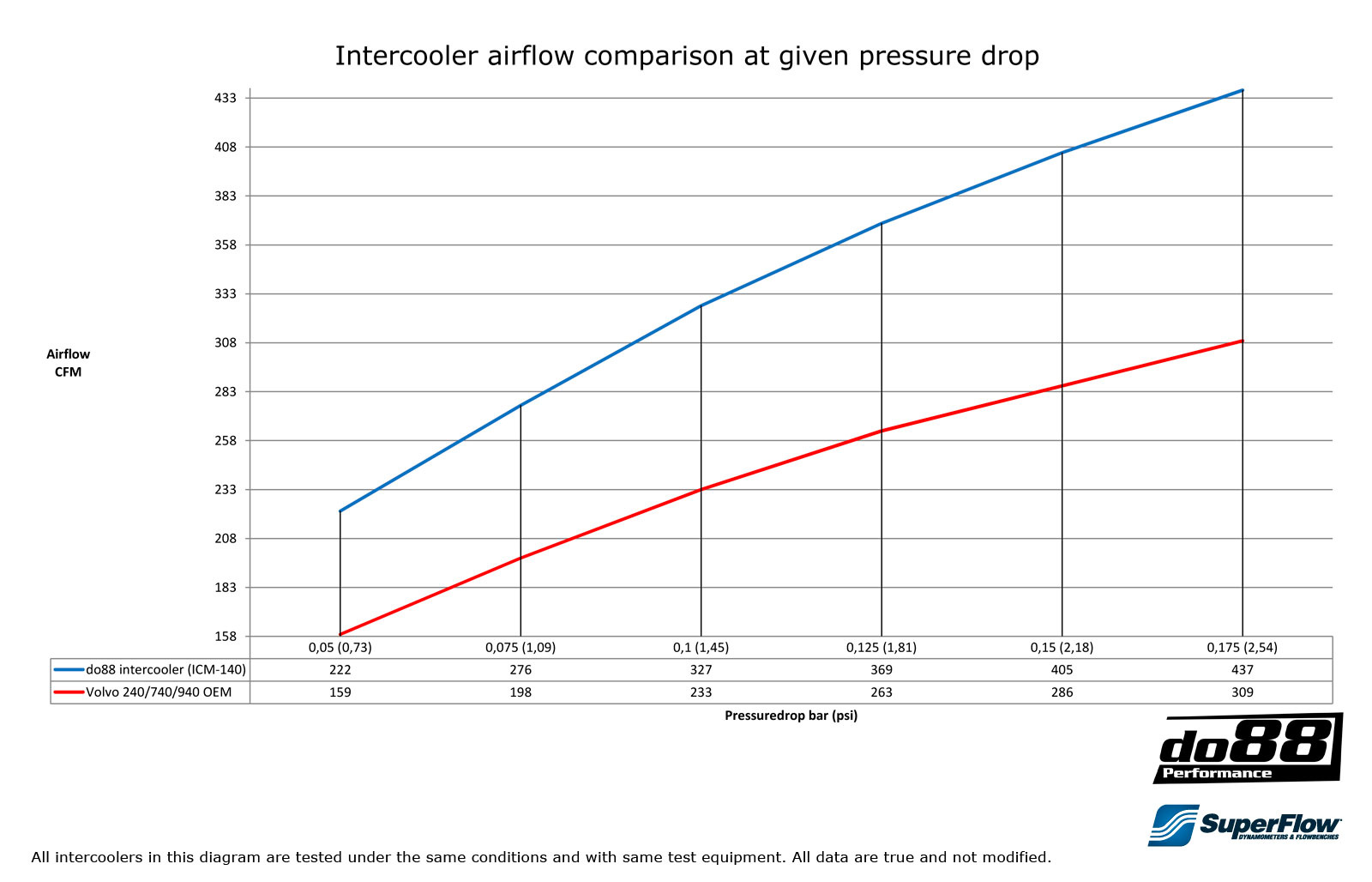 - Temperatur efter intercooler vid samma testförhållanden: 32°C (66°C), do88 34°C lägre!