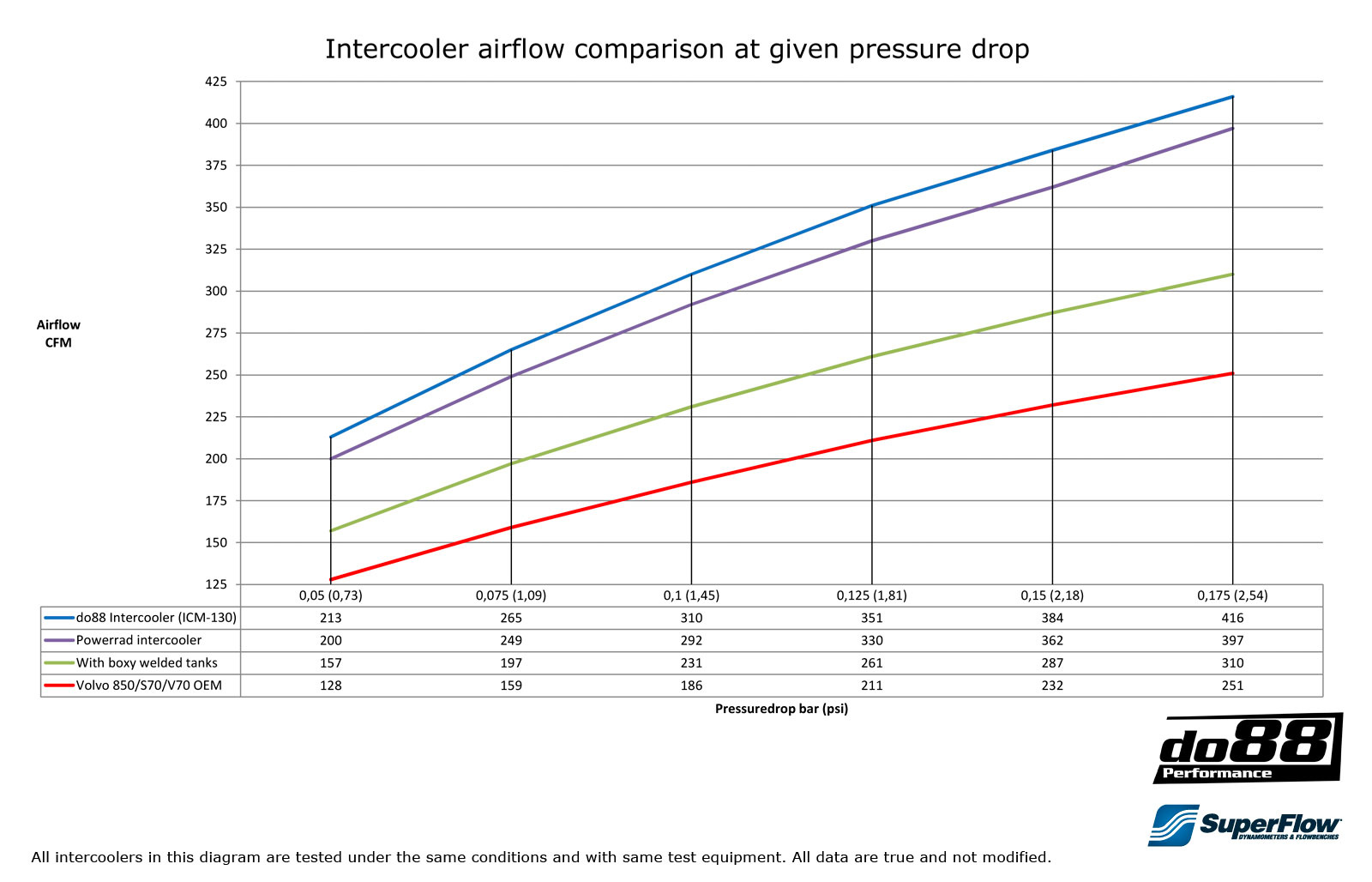 - Temperatur efter intercooler vid samma testförhållanden: 28°C (41°C), do88 13°C lägre!