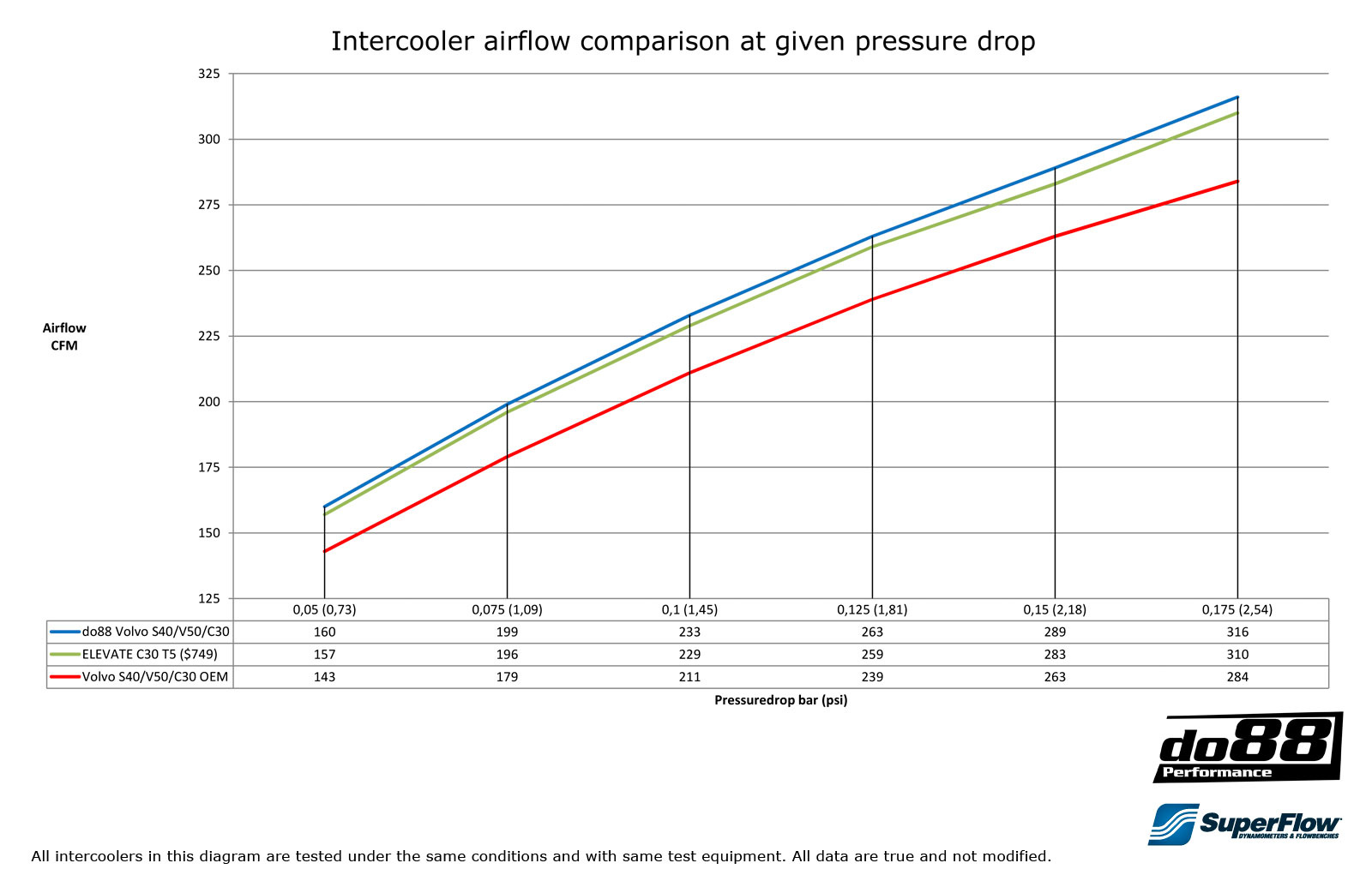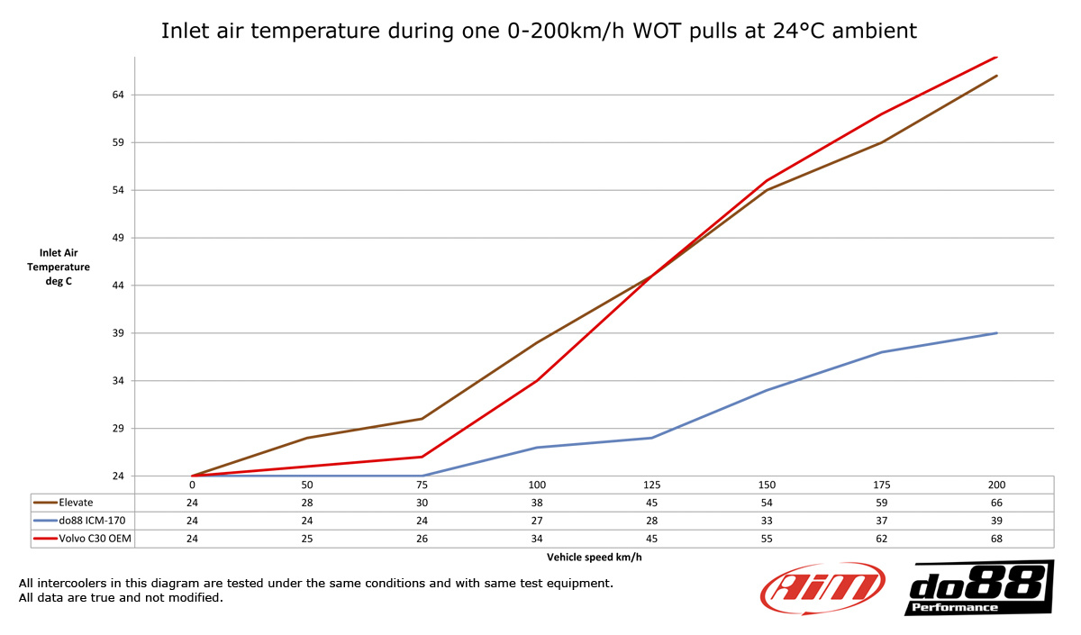 - Temperatur efter intercooler vid samma testförhållanden: 38°C (69°C), do88 31°C lägre!